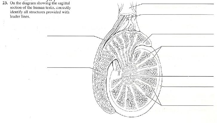 THE TESTIS IS DIVIDED INTO A NUMBER OF LOBES By CONNECTIVE TISSUE. EACH OF THESE LOBES CONTAINS ONE TO Iv _____1________, WHICH CONVERGE TO EMPTY SPERM INTO ANOTHER Gear up OF TUBULES CALLED THE _____2_________.